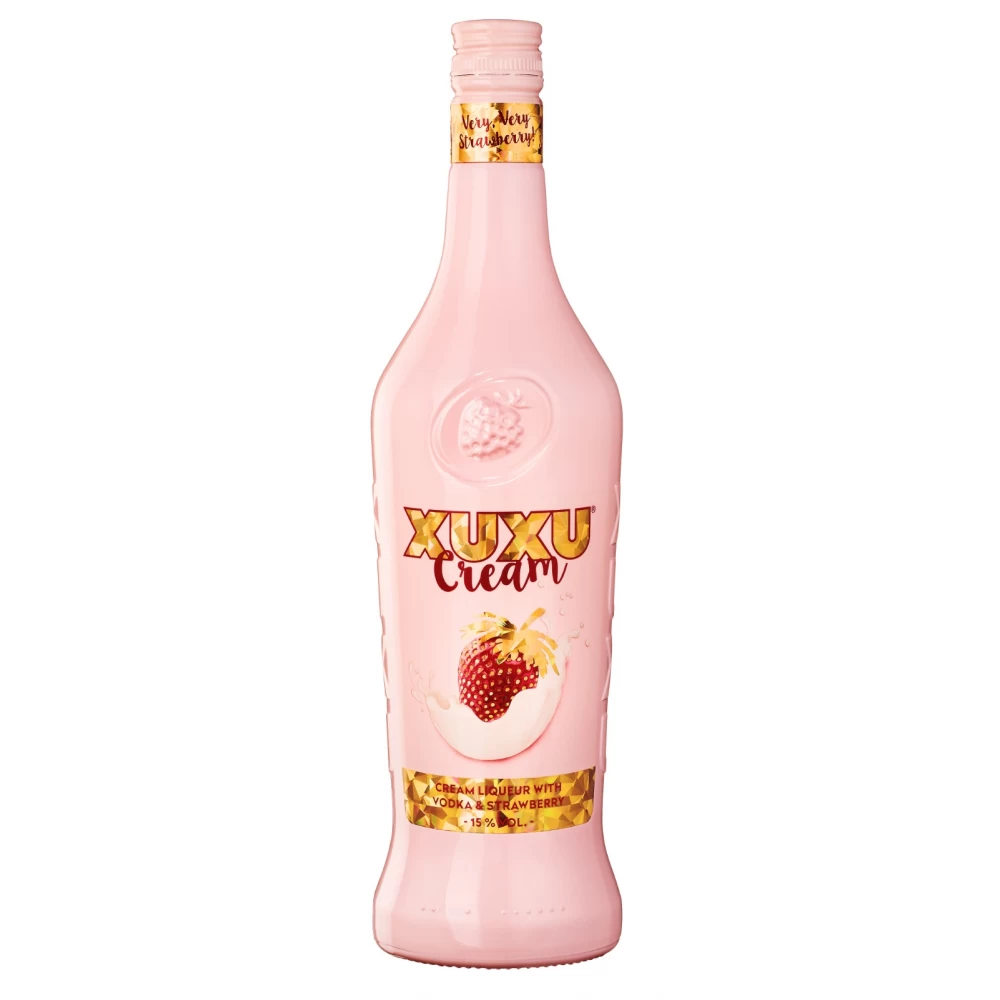 Lichiorul Crema de Capsuni & Vodka XUXU, avand o tarie de 15% alcool intr-o sticla de 0.7l, este o versiune mai bogata si mai cremoasa a lichiorului clasic de capsuni si vodka. Aceasta bautura seducatoare combina dulceata naturala a capsunilor cu textura catifelata a cremei, creand un desert lichid irezistibil, ideal pentru a fi servit ca atare sau in deserturi inovatoare.