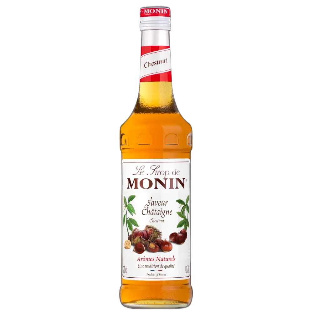 Siropul Monin Chestnut aduce o nota nostalgica si reconfortanta. Cu arome ce evoca castanele prajite la foc si accente delicate de zahar brun, este perfect pentru a adauga complexitate bauturilor calde de iarna sau pentru a crea cocktailuri inedite cu bourbon.